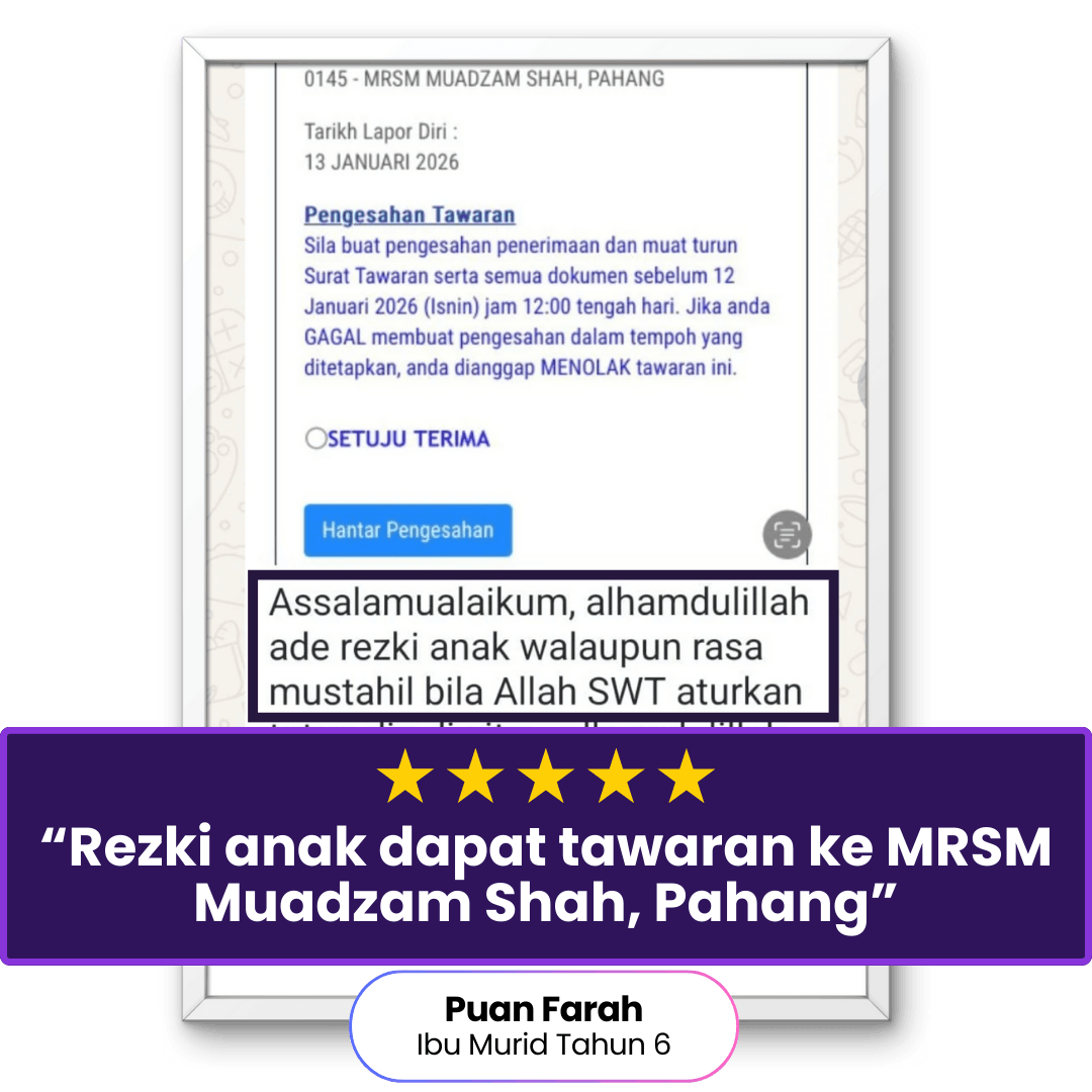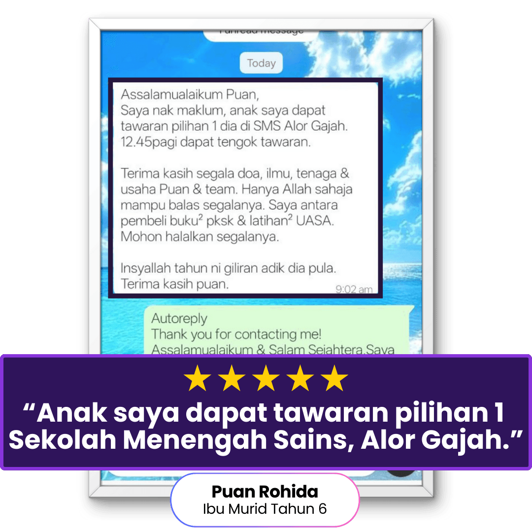 Program Online Setahun yang direka khusus untuk memastikan anak anda menguasai format PKSK dan berjaya ditawarkan ke SBP, SBPI, SMKA, MRSM atau pilihan asrama penuh yang lain.